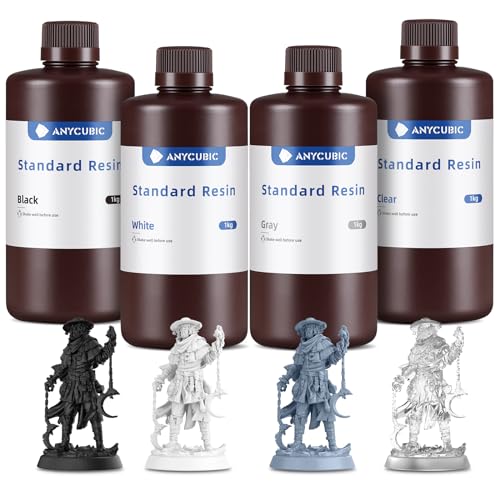 ANYCUBIC Standard 3D Printer Resin, 405 nm UV-Härdande Resin med Hög Precision och Snabb Härdning och Utmärkt Flytbarhet för LCD 3D Printer, Svart+Vit+Grå+Transparent 4kg