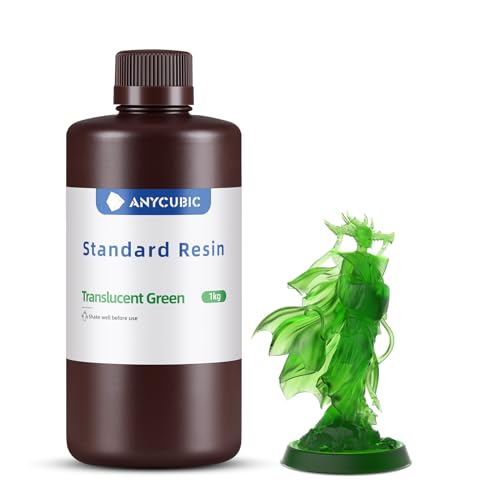 ANYCUBIC Standard 3D Printer Resin, 405 nm UV-Härdande Resin med Hög Precision och Snabb Härdning och Utmärkt Flytbarhet för LCD 3D Printer, Transparent Grön 1kg