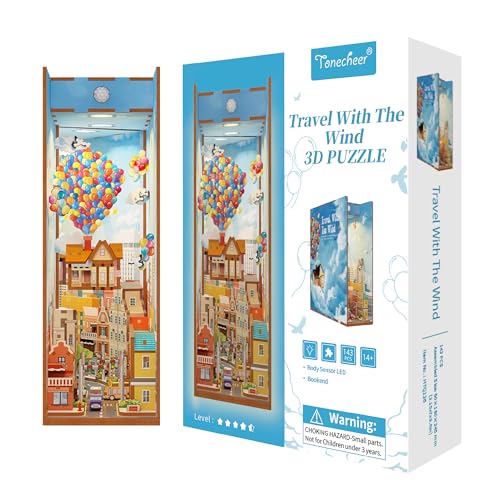 Tonecheer DIY Book Nook Kit, 3D-Pussel Trä Vuxna Gör-Det-Själv Nook Bok Byggnad Miniatyrer Modellbyggnad, Bokhylla Insats Dekoration Kreativ Present (The Flying House)