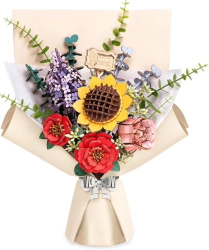ROBOTIME 3D-pussel, blommor, trä, modellkit för vuxna, att bygga, konstgjorda blommor för dekoration, heminredning, tillbehör, vardagsrum, gåvor för kvinnor på alla hjärtans dag, blombukett TW01H