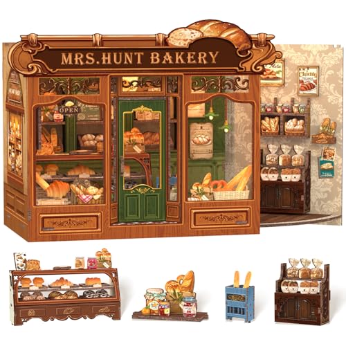 Cutefun Book Nook Kit, Diy Miniatyr Dockhus Trä Bokstöd Bokhylla Med LED-ljus 3D Trä Pussel Hantverk Hem Deco för Tonåringar Och Vuxna (MRS.HUNT BAKERY)