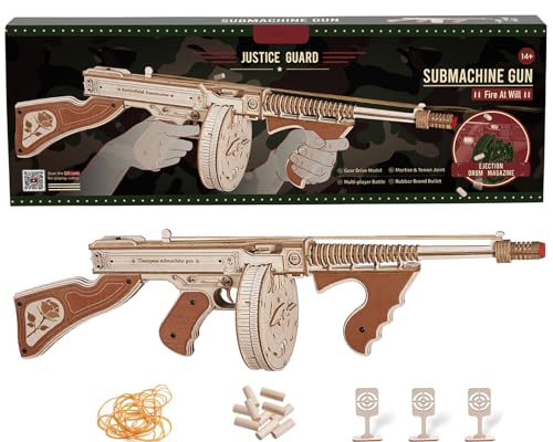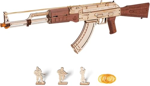 ROBOTIME 3D-pussel modellbygge av trä, leksak, gevär modellbyggsats trä med gummiband och mål, presenter för vuxna och tonåringar