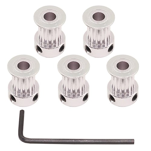 GT2 Aluminium Timing Belt Remskivsats 16 tänder Borr 5 mm och M2 Skiftnyckel för RepRap 3D-skrivare 6 mm Bredd Timing Belt (5-pack), 16 teeth, bore 5mm, 5