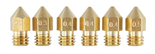 6 st. (0,2 mm + 0,3 mm + 3 x 0,4 mm + 0,5 mm) munstyckeset MK8 Makerbot RepRap Anet A8/A6 Flashforge CtC Extruderare Hotend skrivhuvud gjord av mässing för 1,75 mm glödtråd 3D-skrivare (munstycke) M6