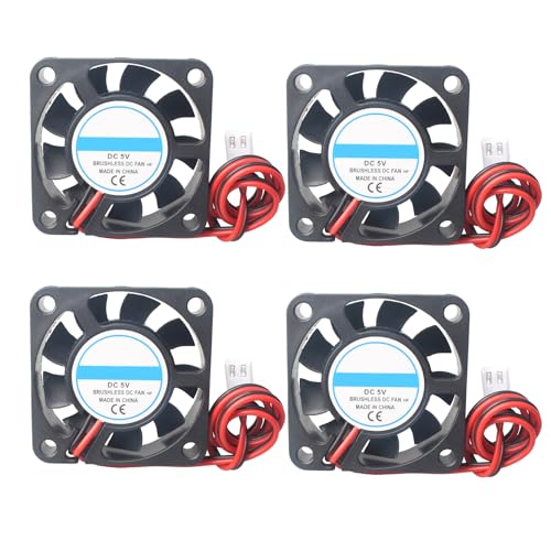 Jopto 4 st 3D-skrivarfläkt DC 5 V 4010 tyst kylfläkt 40 x 40 x 10 mm borstlös fläkt 3D-skrivartillbehör med 2-stifts anslutning för Makerbot Ender 3 RepRap i3 CR-10 3D-skrivare