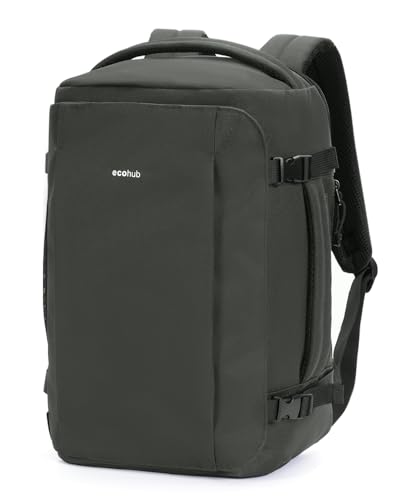 ECOHUB för Ryanair Handbagage Ryggsäck 40x20x25, Under Säte Kabinväska 20L, ReseRyggsäck med 14'' Laptop 3D-fack, 180° öppnin Flygplan Miljövänlig Kabinväskor, Travel backpack för Män Kvinnor,Armégrön