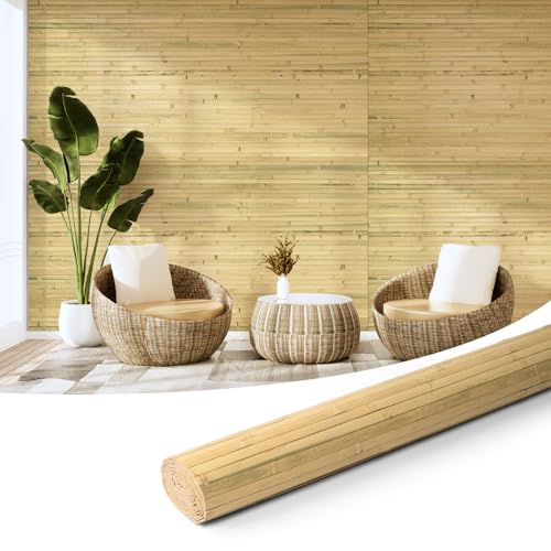 Art3d Naturlig bambu väggpanel för inredning väggdekor, förnybar stavwrap vingpanel för vägg tak möbler skåp kontor, 1122 x 244 cm - rå