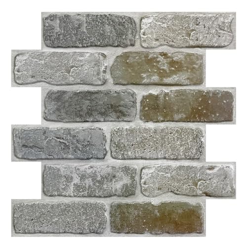 COMSTICKC hög kvalitet 3D-väggpanel självhäftande tegelsten grå, 10 st 30 x 30 cm, 3D PVC stenutseende självhäftande väggplattor, 3D-tegeltapet för inomhus, vattentät, övermålningsbar