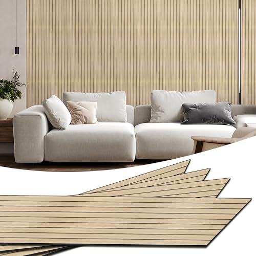 TONOR 4-Pack Akustisk Träfaner Väggpaneler, 120 * 60 * 1.8 cm 3D Självhäftande Väggpanel, Dubbelskikt Ljudisolerade Kakel för Ekoabsorption, Dekorativ Ljudisolerad Akustisk Barriär, Burly Wood