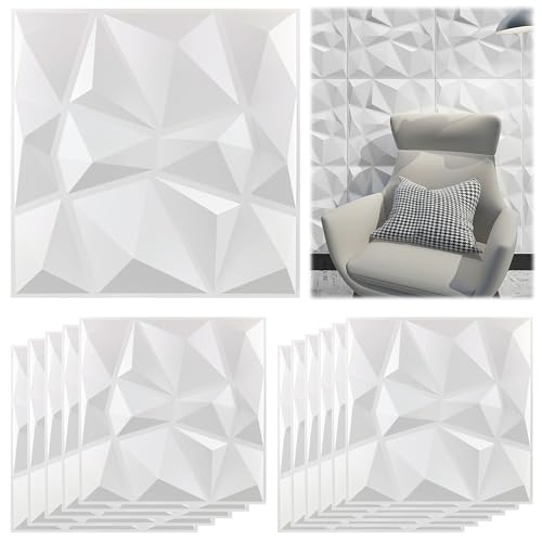20 dekorativ 3D-väggpanel, matt vit 30 x 30 cm, 3D väggpaneler med diamantdesign för hemmakontor eller studio inredning