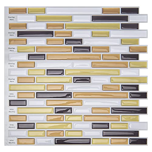 Art3d 10-ark Peel and Stick Premium Self-Adhesive 3D Tiles Metro Backsplash för Kök, Badrum Vinyl Dekorativ Vattentät Väggpanel, 30 x 30 cm