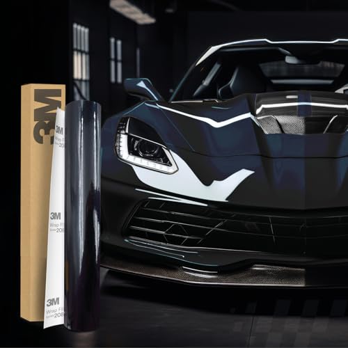 3M 2080 Bilvinylfolie, självhäftande folie för bil, motorcykel och båt, 30 x 152 cm, 3D-lackskyddsfolie med luftkanaler för foliering, blank svart (G12 Gloss Black)