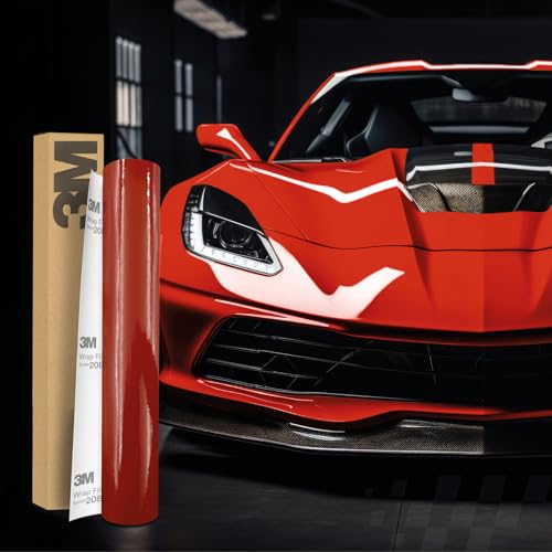 3M 2080 Bilvinylfolie, självhäftande folie för bil, motorcykel och båt, 30 x 152 cm, 3D-lackskyddsfolie med luftkanaler för foliering, blank röd (G53 Gloss Flame Red)