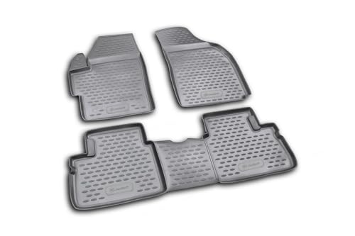 Element perfekt passform premium 3D gummimattor golvmattor lämpliga för KIA Rio (II, IIp) 2005–2011, 4 delar. Grå