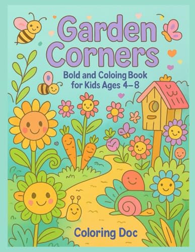 Garden Corners: Bold and Easy Coloring Book for Kids Ages 4–8 – Cute Flowers, Vegetables, and Animals for Fun Learning and Coloring: A Delightful ... Designed to Boost Fine Motor Skills, Focus