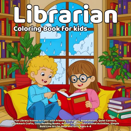 Librarian Coloring Book: Fun Library Scenes to Color with Friendly Librarians, Bookshelves, Quiet Corners, Bookmark Crafts, Cozy Reading Nooks, Animal ... Bold Line Art for Boys and Girls Ages 4–8