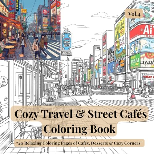 Cozy Travel & Street Cafés Coloring Book vol 4: 40 Relaxing Coloring Pages of Cafés, Desserts & Cozy Corners for Stress Relief