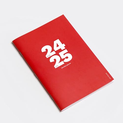 OCTÀGON DESIGN | 2024/2025 Big Monthly Planner A4 - Månatlig planerare - 12 månader, augusti 2024/juli 2025-4 anteckningssidor - mjukt omslag - röd färg.