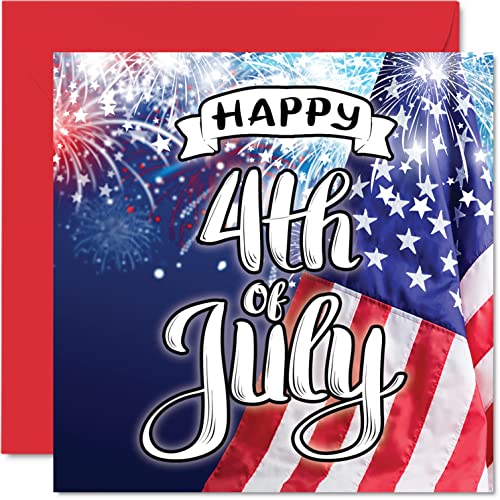 Fjärde juli kort för män kvinnor – 4 juli – självständighetsdagskort för mamma pappa bror syster son dotter farfar, 145 mm x 145 mm 4 juli gratulationskort