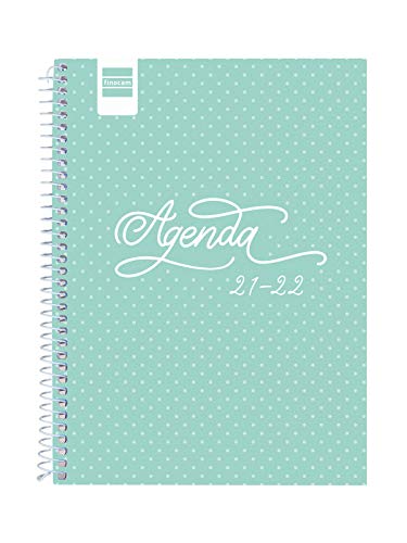 Finocam – kalender cool 2021/2022, veckoöversikt, september 2021 till juni 2022, 10 månader och juli/augusti som översikt, 4º, 155 x 212 mm, spiralbunden turkos, spanska