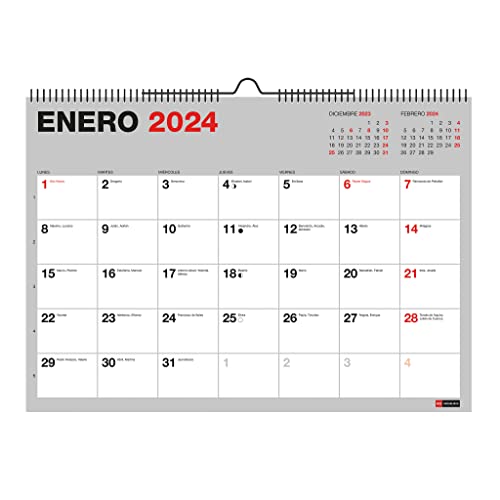 Miquelrius - Kalender Vägg 18 Månader, från Juli 2023 till December 2024, Storlek A4, Grå