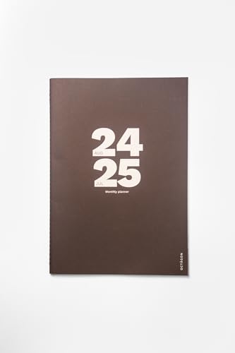 OCTÀGON DESIGN | 2024/2025 Big Monthly Planner Plus A4 - Månatlig planerare - 12 Månader, Augusti 2024/juli 2025-2 Månadssidor - Mjukt omslag - Kakaobrun färg.