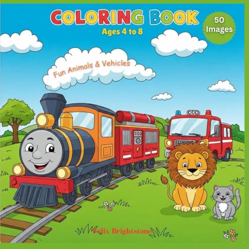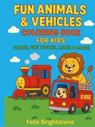 Fun Animals & Vehicles Coloring Book for Kids: Trains, Fire Trucks, Lions & More!: A Creative and Engaging Coloring Book for Kids Ages 4-8