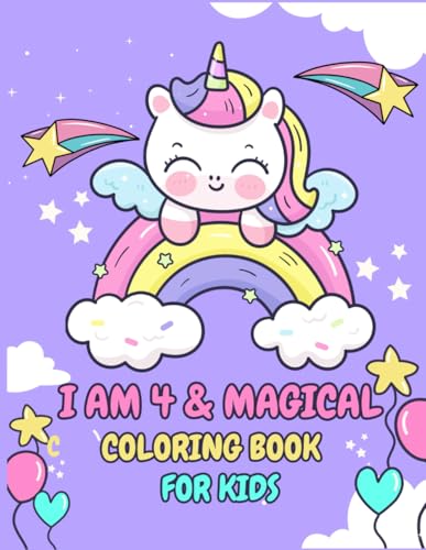 I'm 4 And Magical – Fun & Cute Animals Coloring Book: A Delightful Coloring Adventure Filled with Unicorns, Lions, Dolphins, and More!