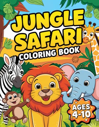 Jungle Safari Coloring Book for Kids: Fun and Cute Safari Animal Coloring Pages for Ages 4-10: Discover 35+ Jungle Safari Animals to Color: Lions, ... Pages for Easy Coloring & No Bleed-through