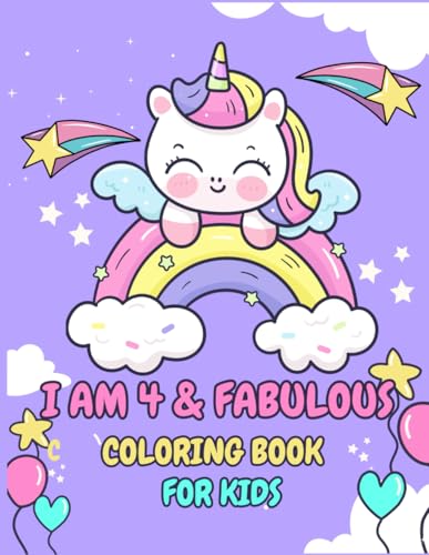 I'm 4 Fabulous – Fun & Cute Animals Coloring Book: A Delightful Coloring Adventure Filled with Unicorns, Lions, Dolphins, and More!