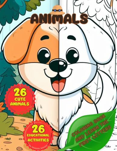 Coloring book of animals, dogs, tigers, penguins, lions and more. Educational book to learn the first letters. For toddlers, preschoolers, ages 2-4, ages 4-8