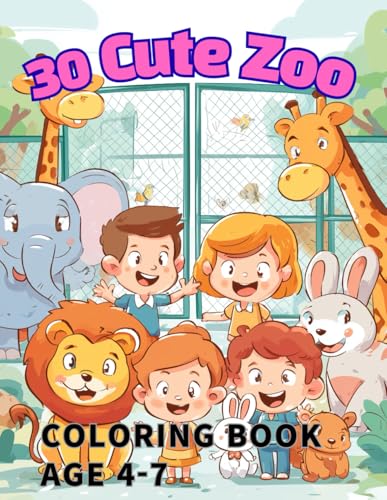Cute Zoo Coloring Book for Kids Ages 4–7: Meet Lions, Elephants, Giraffes, Pandas, and More with Friendly Zookeepers and Happy Children!