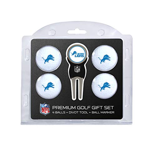 Team Golf NFL Detroit Lions 4 Golf Ball And Divot Tool Set Regulation Size Golf Balls (4 Count) & Divot Tool with Removable Double-Sided Magnetic Marker