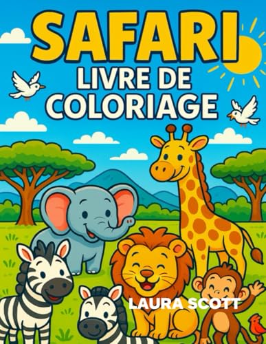 Safari - 50 coloriages d’animaux de la Savane pour enfants de 4 à 10 ans: Livre de coloriage éducatif – Lions, girafes, éléphants, zèbres et plus encore !