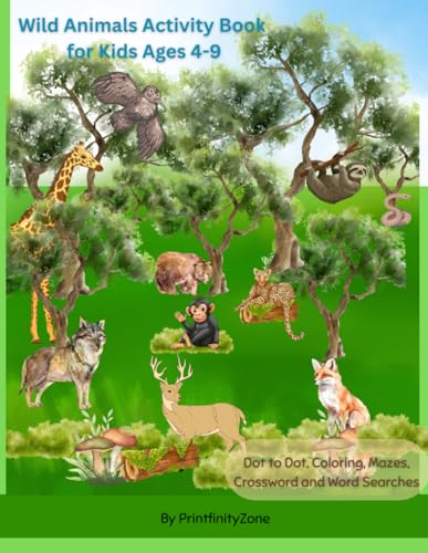 Wild Animals Activity Book for Kids Ages 4-9: Dot to Dot, Coloring, Mazes, Crossword and Word Searches: A Fun and Educational Jungle Adventure Featuring Lions, Elephants, Monkeys, and More