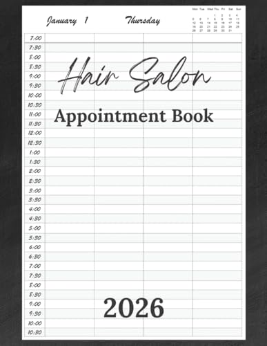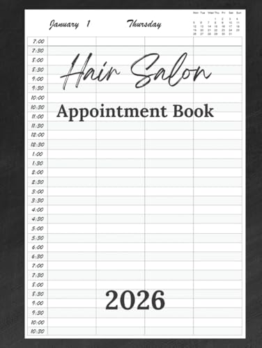Hair Appointment Book 2026 : Hair Salon Appointment Book 4 Column 30 minute increments, Dated Week To View Client Scheduler and Daily Planner For Mobile Hairdresser, Stylist, Therapist, 53 Weeks.