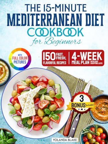 The 15-minute Mediterranean Diet Cookbook for Beginners: 150 Fast, Fresh, and Flavorful Recipes with 4-week Meal Plan and Easy Shopping Lists