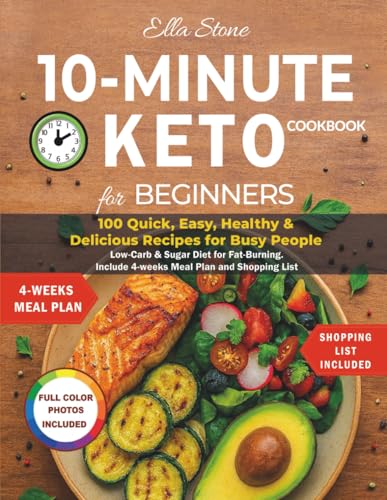10-Minute Keto Cookbook for Beginners: 100 Quick, Easy, Healthy & Delicious Recipes for Busy People, Low Carb & Sugar Diet for Fat Burning. Include 4-weeks Meal Plan and Shopping List