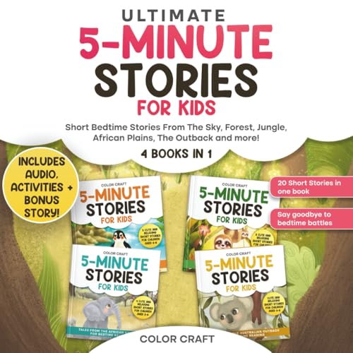 Ultimate 5-Minute Story Book For Kids: 4 Books in 1 - Short Bedtime Stories for Children Aged 2-8: Relaxing Tales From The Sky, Forest, Jungle, African Plains, The Outback and more!