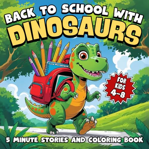 Back to School with Dinosaurs 5 Minute Stories and Coloring Book for Kids 4–8: 30 fun illustrations with inspiring school stories about friendship hobbies and dino life