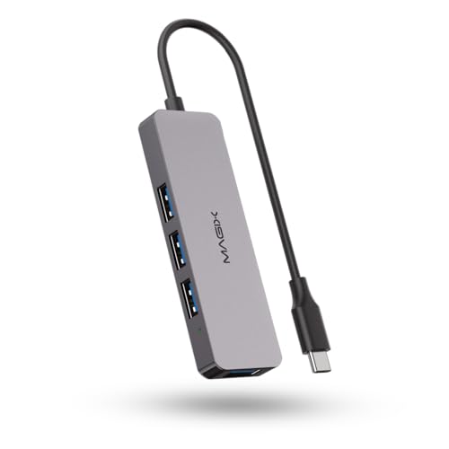 Magix USB-C-hub, typ C till 4-portar USB 3.0, aluminiumhölje, 5 Gbit/s dataöverföringshastighet, kompatibel med MacBook Pro, iPad Pro, MacBook Air, XPS, Surface Book med mera