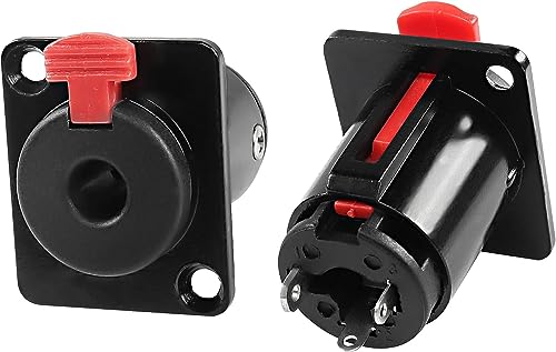 XMSJSIY 1/4 tum 6,35 mm stereouttag ljuduttag adapterkontakt 6,35 mm TS/TRS hona uttag panelmontering med låsstil D-serie storlek för mikrofon högtalare förstärkare mixer – 2-pack