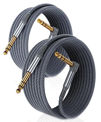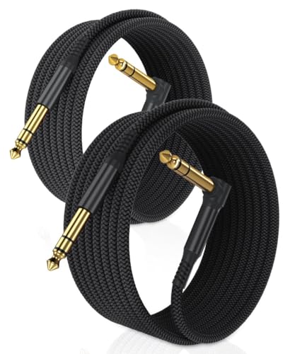RUXELY 6.35 mm TRS Instrumentkabel 3m 2PCS, Rät Vinkel 90 Grader Till 1/4 Tum Hane Stereo Ljudsladd,6.35 Balanserad Linjeledning för Elgitarr,Bas,Tangentbord,Mixer,Förstärkare,AMP,Högtalare,Utjämnare