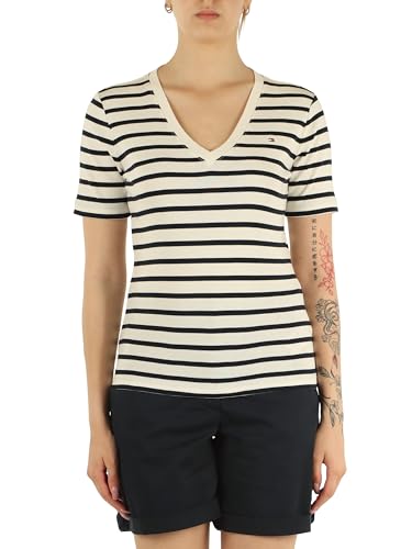 TOMMY HILFIGER Dam NY SLIM CODY V-NK SS WW0WW40584, vit, XXS, Vit (Ecru/Blue Spell Stp), XXS