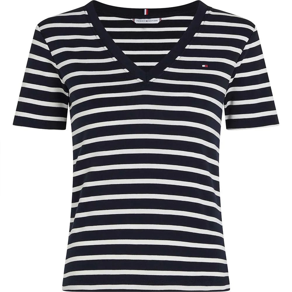 TOMMY HILFIGER Dam NY SLIM CODY V-NK SS WW0WW40584, blå, S, Blå (Breton Dark Night Navy Stp), S
