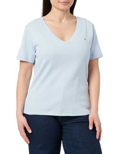 TOMMY HILFIGER Dam NY SLIM CODY V-NK SS WW0WW40584, blå, XXXL, Blå (Breezy Blue), 3XL