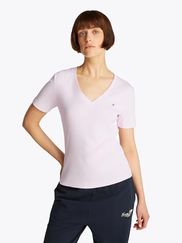 TOMMY HILFIGER Dam NY SLIM CODY V-NK SS WW0WW40584, rosa, S, Rosa (ljusrosa), S