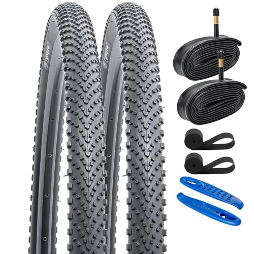 YunSCM 2 st 60TPI nylon punkteringssäker 28 tums däck 28 x 1,50 700 x 38C kappa 40–622 och 2 st 700C slang AV48 mm ventil kompatibel mountainbikes, racercyklar, stadscyklar 700 x 40C cykeldäck vikbar
