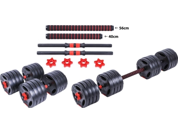 C.P.Sports 2in1 hantel- och skivstångsset 40kg | 4x 1,25kg - 6x 2,5kg - 6x 3,0kg vikter - 2x handtag | plastskivor för styrketräning, fitness, hemmagym