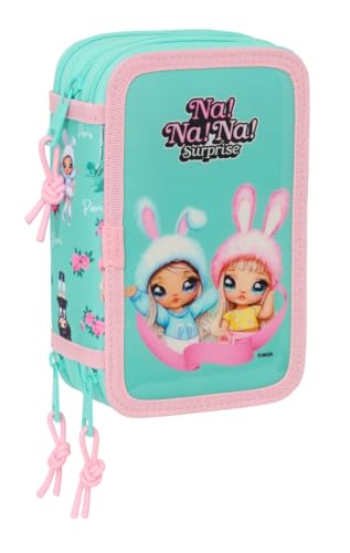 Safta NANA BUNNY - Skolväska med 37 medföljande verktyg, barnfodral, barnfodral, perfekt för barn i åldrarna 5 till 14 år, bekväm och mångsidig, kvalitet och styrka, 12,5 x 5,5 x 19,5 cm, Turkos/rosa,